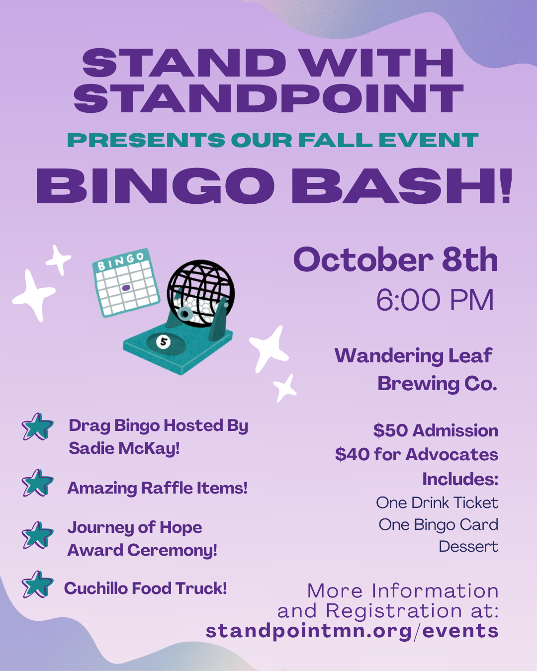 All proceeds go to help Standpoint continue to provide FREE legal advice and advocacy to domestic and sexual violence survivors, and their providers, in Minnesota.